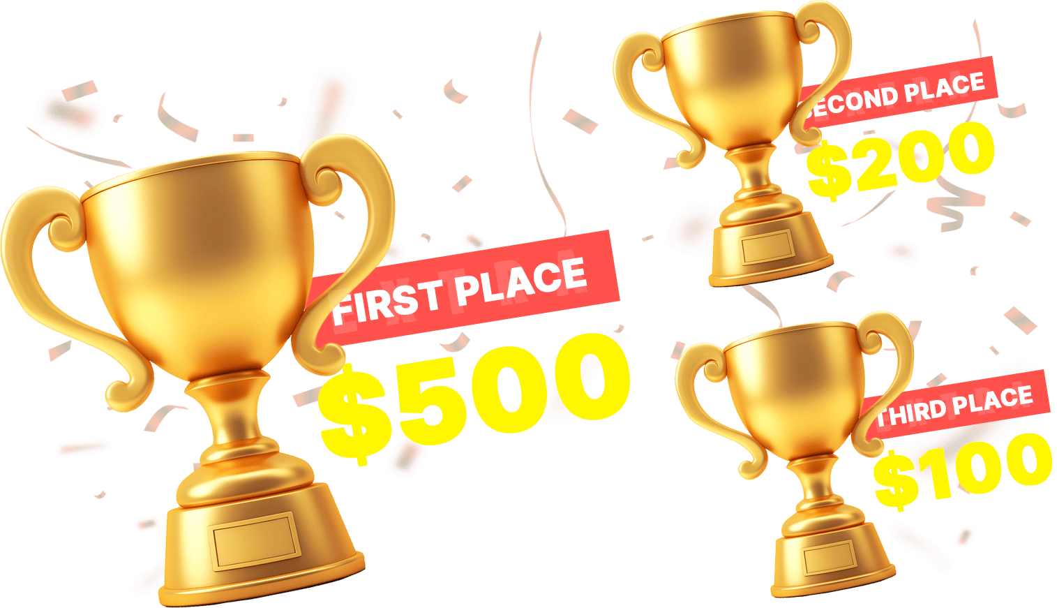 2nd Prize $200 - 3rd Prize $100 Commissions Must Exceed Prize Money (Otherwise Pro’rata).